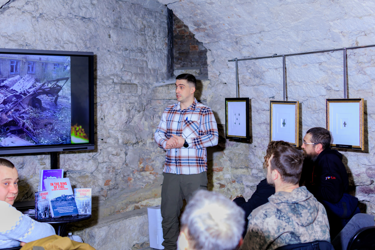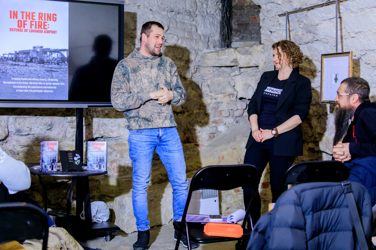 On April 8, 2025, on the eleventh anniversary of the start of the defense of Luhansk Airport, a presentation of the advance copy of the English-language edition of the book In the Ring of Fire: Defense of Luhansk Airport took place in the dungeon of the Garrison Church in Lviv.